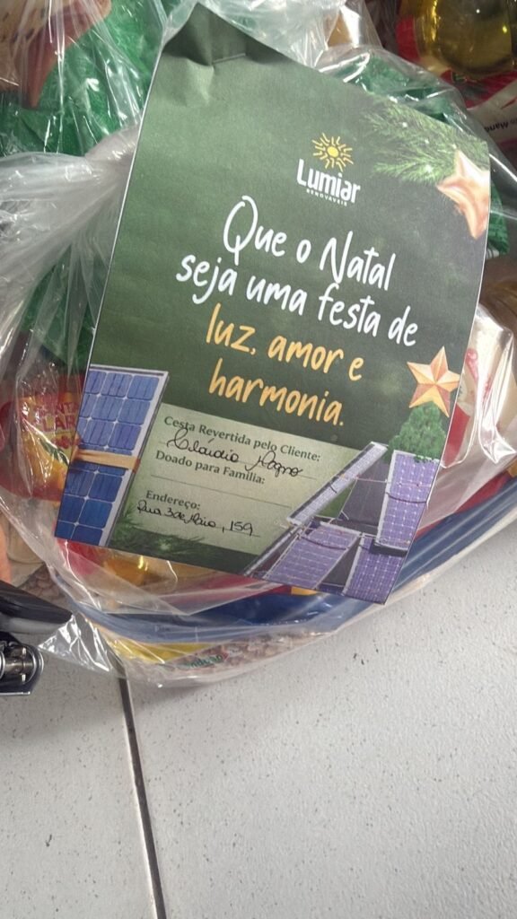 De acordo com a empresa, as cestas arrecadadas serão destinadas a famílias em situação de vulnerabilidade, reforçando o compromisso social da Lumiar para além da atuação no setor de energia renovável. A entrega está prevista para ocorrer no período natalino.